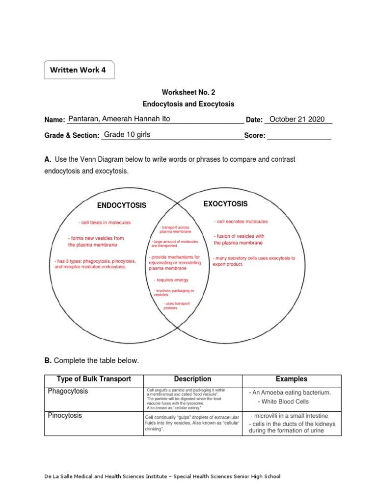 2.16 exocytosis and endocytosis online worksheet for 12. A cell can import and export large materials or large amounts of material in vesicles during the processes of endocytosis and exocytosis. A small membrane sac used to transport substances during exocytosis & endocytosis. This worksheet contains basic conceptual questions about cell transport: Diffusion, osmosis, endocytosis, and exocytosis.